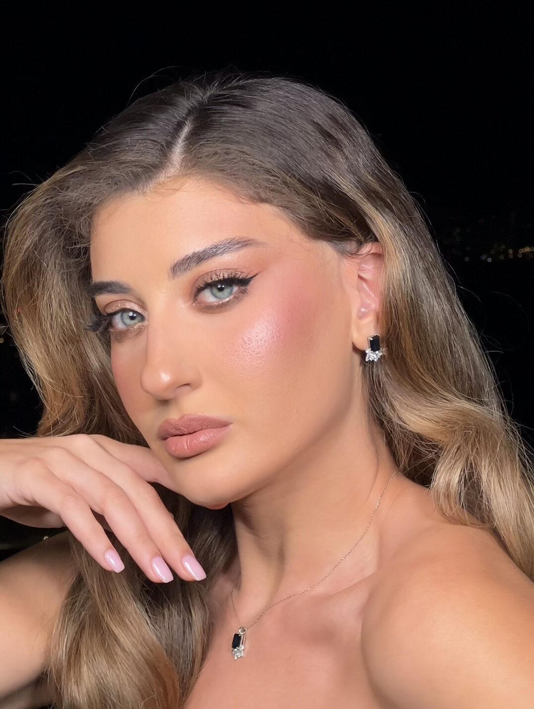 Unique pendant with elegant chain. A statement, luxurious piece with dark blue and white zircon stones, that captivates with its sparkle.